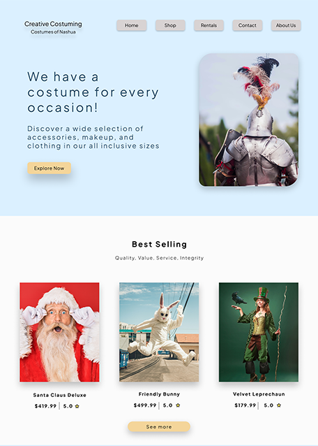 Showcasing my expertise in digital design, this redesigned costume website brings together captivating visuals and intuitive navigation for an unforgettable user experience. Concept was designed and created using the interface design tool, Figma.
